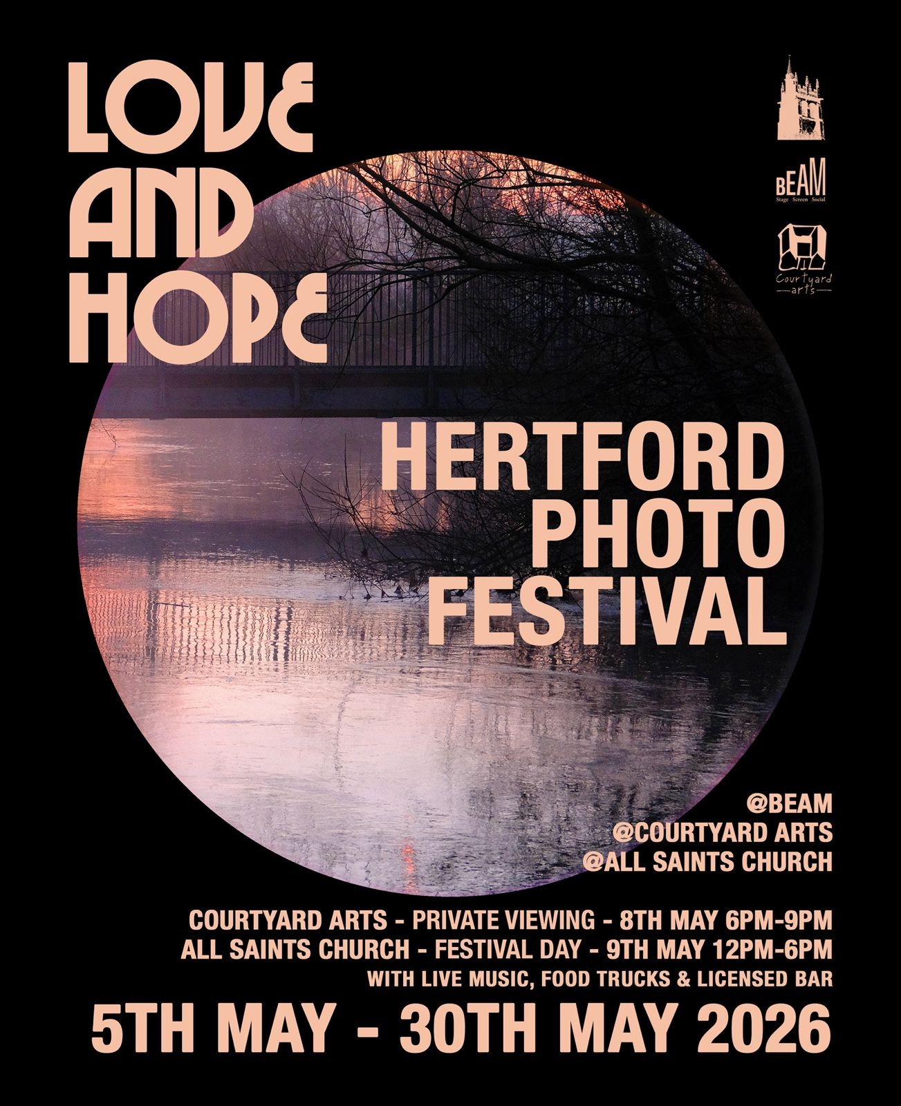 'LOVE AND HOPE' Hertford Photo Festival is supported by Courtyard Arts Centre, All Saints' Church, BEAM and Go Hertford, and runs between 5th and 30th May 2026.
