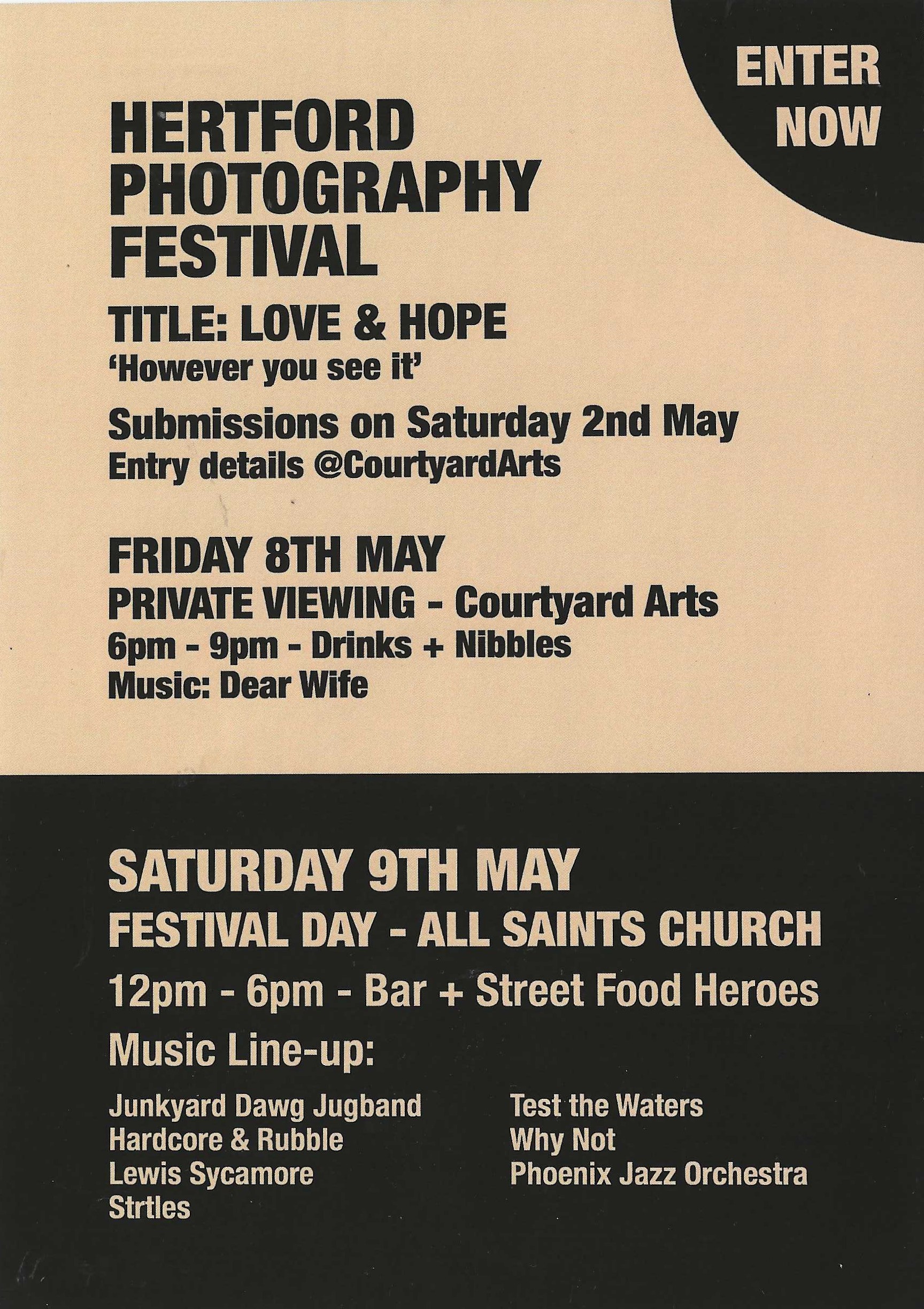 'LOVE AND HOPE' Hertford Photo Festival is supported by Courtyard Arts Centre, All Saints' Church, BEAM and Go Hertford, and runs between 5th and 30th May 2026.
